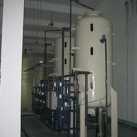 软化水设备采用离子交换原理,去除水中的钙、镁等结垢离子。当含有硬度离子的原水通过交换器内树脂层时,水中的钙、镁离子便与树脂吸附的钠离子发生置换,树脂吸附了钙、镁离子而钠离子进入水中,这样从交换器内流出的水就是去掉了硬度的软化水。 由于水的硬度主要由钙、镁形成及表示,故一般采用阳离子交换树脂(软水器),将水中的Ca2+、Mg2+(形成水垢的主要成份)置换出来,随着树内Ca2+、Mg2+的增加,树脂去除Ca2+、Mg2+的效能逐渐降低。当树脂吸收一定量的钙镁离子之后,就必须进行再生,再生过程就是用盐箱中的食盐水冲洗树脂层,把树脂上的硬度离子在置换出来,随再生废液排出罐外,树脂就又恢复了软化交换功能。