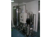 RO膜对高价离子、胶体、细菌及分子量大于300 dalton的有机物质(包括热源)去除率高达99%以上,对低价离子(NA+、K+)去除率达95%,当源水电导率<1000&micro;s/cm,RO纯水电导率通常≤20-30&micro;s/cm,符合国家三级用水标准。再经过原子级离子交换柱循环过滤,出水率可达18.2MΩ.cm。 反渗透法是可达到90%~99%杂质去除率经济的方法,同时也是试剂级超纯水系统好的前处理方法。 RO膜的过滤能力受水温影响较大,适合的水温为25℃~30℃,温度下降1℃,RO膜的产水量约下降3%,当水温接近0℃时,RO膜将停止产水。紫外线杀菌器:紫外线是一种肉眼看不见的光波,存在于光谱紫外线端的外侧,故称之为紫外线,依据不同的波长范围,被割分为 A 、 B 、 C 三种波段,其中的 C 波段紫外线波长在 240 - 260nm 之间,为有效的杀菌波段,波段中之波长强点是 253.7nm。当紫外线设备产生的足够剂量的强紫外光照射到水、液体或空气时,其中的各种细菌、病毒、微生物、寄生虫或其它病原体在紫外光 UV-C 的辐射下,细胞组织中的 DNA 、 RNA 被破坏,从而阻止子细胞的再生 ,紫外线消毒设备在不使用任何化学药剂的情况下,较短时间内(通常为 0.2-5 秒)杀灭了水中、液体或空气中 99.9% 以上的细菌和病毒。科学试验证明,波长在 240-280nm 的紫外线具备有高效杀菌功能。离子交换混床除盐单元:在同一个交换器中,将阴、阳离子交换树脂按照一定的体积比例进行填装,在均匀混合状态下,进行阴、阳离子交换,从而除去水中的盐分,称为混合床除盐处理。混合床的阴、阳离子交换树脂在交换过程中,由于是处于均匀混合状态,交错排列,互相接触,可以看作是由许许多多的阴、阳离子交换树脂而组成的多级式复床,可相当于1000~2000级。因为是均匀混合,所以,阴、阳离子的交换反应几乎是同时进行的,所产生的H+和OH-随即合成H2O,交换反应进行得很,出水水质高。核子级抛光树脂纯化柱单元:纯化柱内装填有美国罗门哈斯/陶氏公司所产UP核子级混床树脂,当原水通过纯化柱时,水中的阳离子与阳树脂中H+置换,水中阴离子与阴树脂中OH-离子置换,交换后进入水中的H+和OH-会立即结合生成H2O,从而使原水中的阴阳离子得以去除,其出水电阻率高达18.3 MΩ.cm。