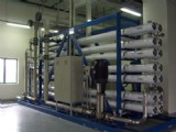 工业用纯水设备是用于工业生产用水水的纯水制取装置。工业用纯水机可以用于:饮用水、瓶装水、食品工业用水、半导体工业、精细化工、光学工业用水、电镀用水、医药用水、透析医疗用水、代替各类蒸馏水及超纯水供水等。 一套完整的水处理系统由预处理系统、精处理系统、后处理系统三大部分组成。原水经PP滤芯(砂棒过滤器)、活性炭单元、软水器单元等预处理系统后,砂过滤器:使水中的悬浮物(颗粒物质)、胶体、有机物、硬度、微生物等杂质含量大大降低,以减轻后续的反渗透、电除盐等精处理系统的处理负荷,延长其使用寿命。活性炭过滤器:它的比表面积很大,且布满了孔径极小(10~30埃)的微孔,对有机物胶体、余氯、铁离子等有明显的吸附滤除作用。台式纯水机、净水器等常用10寸/20寸活性炭滤芯。大型纯水机组常用玻璃钢/不锈钢材质的活性炭滤罐。软化器:大中型纯水系统常使用全自动软水器以除去原水中的钙镁离子。全自动软水器由钠离子树脂罐、再生盐箱及多路控制阀组成,能够设定程序控制运行,自动再生(时间型/流量型两种控制方式),再生时利用虹吸原理吸盐,再注水化盐,再生时间通常为2小时。RO反渗透单元:RO(Reverse Osmosis)反渗透技术是利用压力表差为动力的膜分离过滤技术,源于美国二十世纪六十年代宇航科技的研究,后逐渐转化为民用,目前已广泛运用于科研、医药、食品、饮料、海水淡化等领域。 RO反渗透膜孔径小至纳米级(1纳米=10-9米),在一定的压力下,H2O分子可以通过RO膜,而源水中的无机盐、重金属离子、有机物、胶体、细菌、病毒等杂质无法通过RO膜,从而使可以透过的纯水和无法透过的浓缩水严格区分开来。