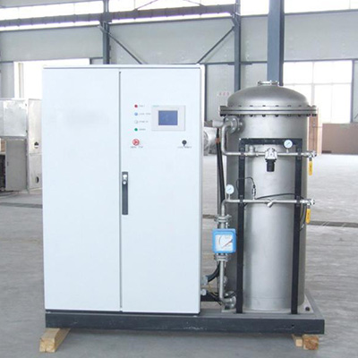 对水冷发生器采说,为使传热表面的结垢少,冷却水的水质十分重要。结垢会使传热效率降低,从而减少臭氧产量,增 加维护费用。在技术上自来水是被优先选择的冷却剂,不过,对大型工业用发生器所需要的耗水量来说,使用自来水经济上毫无吸引力,也许只有发生系统用在水处理厂的情况除外。与自来水水质相反,一般处理后的污水作为冷却水,效果不是很好,因为它容易导致结垢。如果高质量的水或其他流体用在密封的十次冷却回路中,末级热交换器又是专门设计得少结垢;且便于清洗,而且污水出水还可以作为末级散热使用。为了水费和设备维护费之间的平衡,系统设计时多数采用冷却塔水或热交换器饮用水(无悬浮固体、氯化物<5mg/L)