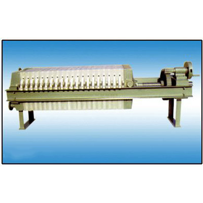 立式压滤机滤板水平和上下叠置,形成一组滤室,占地面积较小。它采用一条连续滤带,完成过滤后,移动滤带进行卸渣和清洗滤带,操作自动化。压滤机的适用范围广,结构较简单。板与框的压紧和拉开,卸渣和清洗滤布都可实行自动化操作,有利于压滤机向大型化发展。压滤机的滤室中增设弹性橡胶隔膜后,可在过滤结束时用高压水或压缩空气借助橡胶隔膜压缩滤渣,使滤渣受到进一步压榨脱液,形成滤室容积可变、滤渣受压缩的隔膜压榨过滤,其压力可达1~2兆帕。
